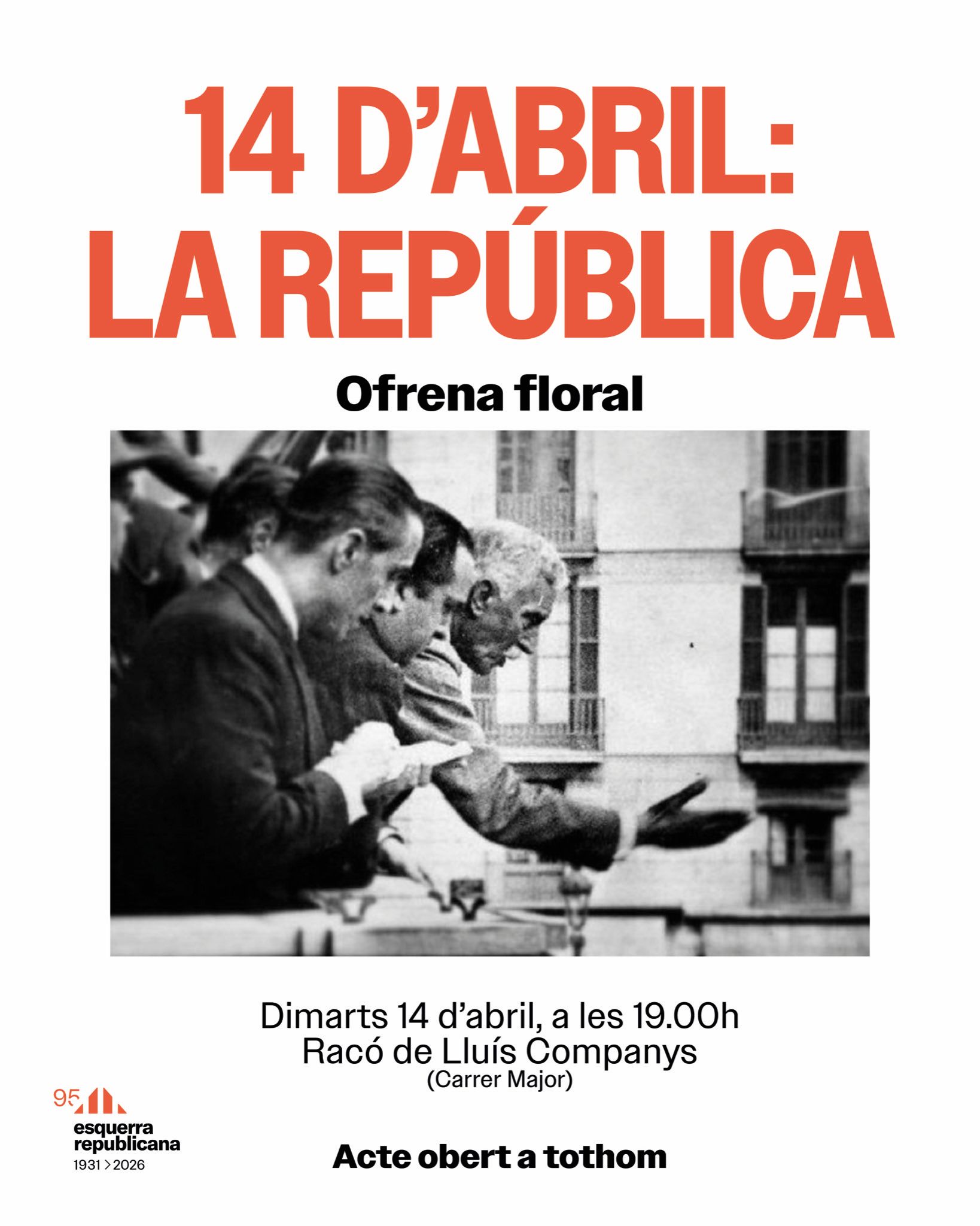 El dimarts 14 d’abril, commemorarem la proclamació de la República. Un exercici de memòria històrica i democràtica necessari.