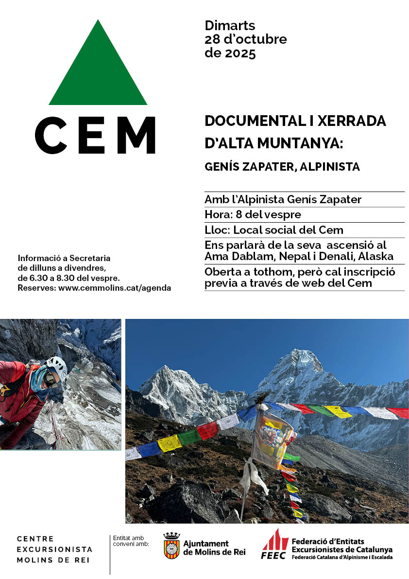 - Documental i posterior xerrada d’en Genís Zapater de les seves ascensions i experiències.