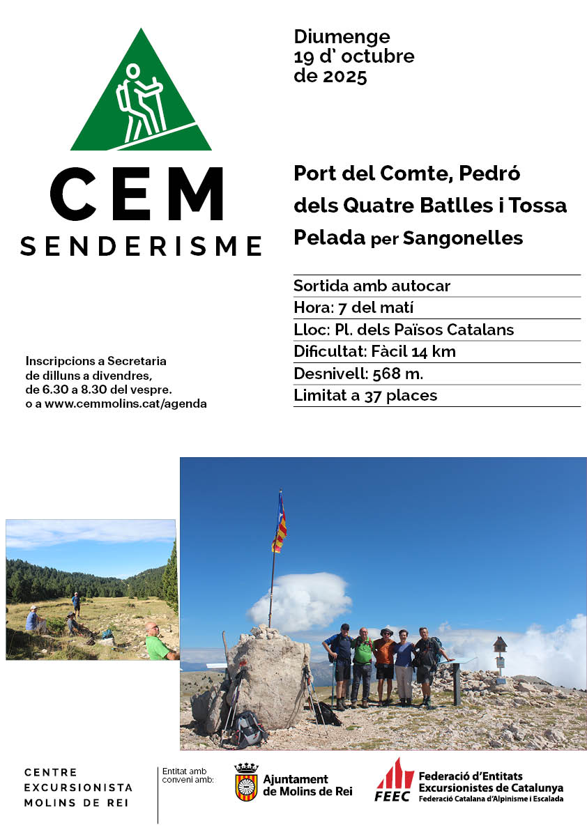 Sortida de senderisme pel Port del Compte i pujada al Pedró dels Quatre Batlles. Sortida en autocar.