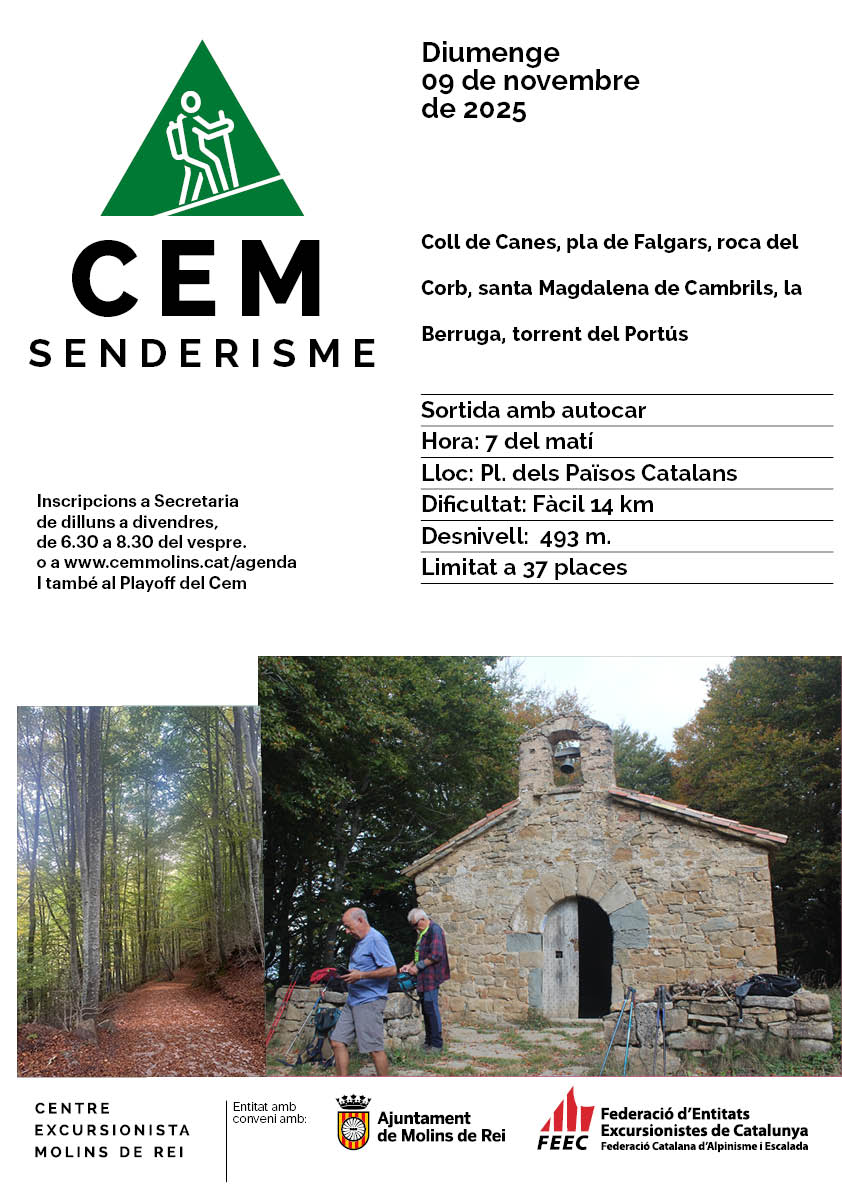 Excursió de 14 kms de recorregut fàcil. Sortida en autocar.
