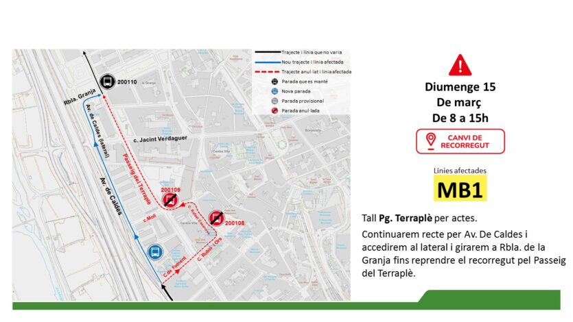 Diumenge 15 de març 2026- Canvi recorregut MB1 i MB2