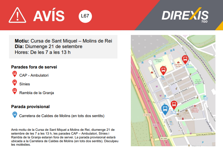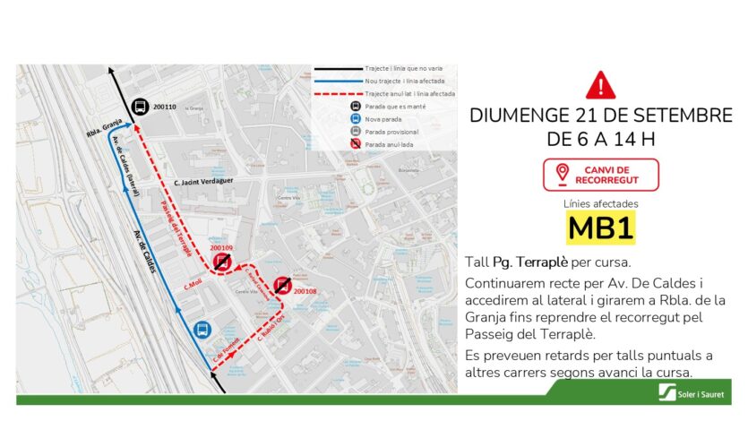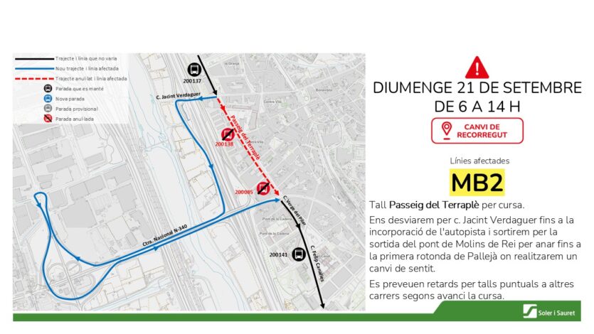 Amb motiu de la celebració de la Cursa de Sant Miquel, diumenge dia 21 de setembre l’accés a guals i la circulació al carrer es pot veure afectada de manera puntual entre les 7 h i les 13 h.