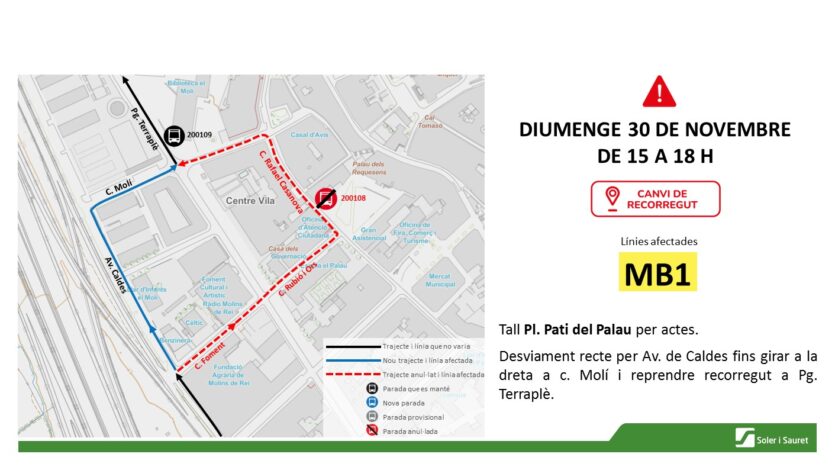 Home / Notícies / Diumenge 30 de novembre, tall a la Pl. Patí del Palau de la línia MB1