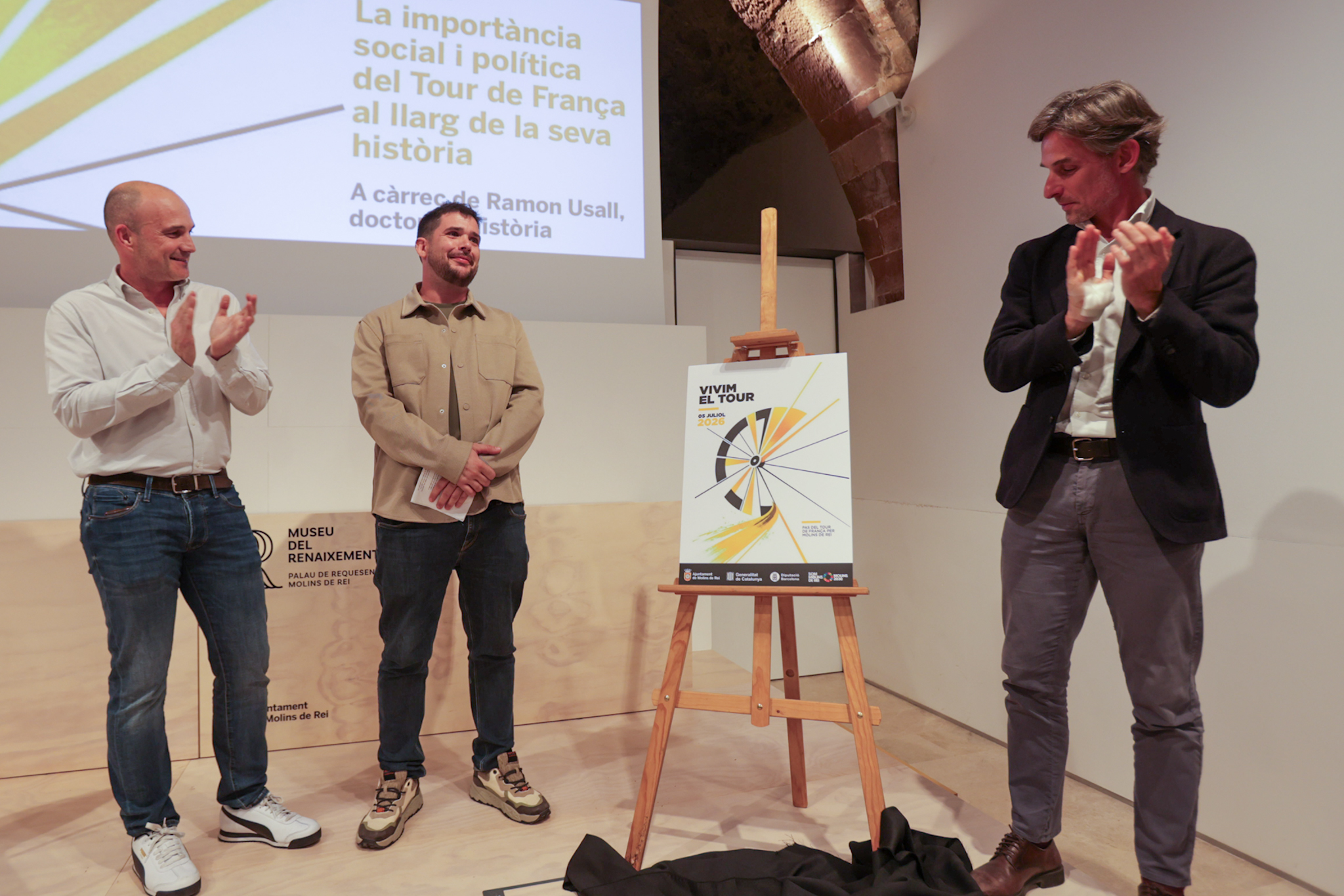 Ahir al vespre s’iniciava oficialment aquesta programació amb un acte doble que tenia lloc a la Sala La Gòtica del Museu del Renaixement. En primer lloc es presentava la imatge que acompanyarà aquest programa d’activitats al nostre municipi i que ha estat elaborada pel dissenyador local Joan Jarque. Sota l’eslògan “Vivim el Tour”, la cartelleria aplega els elements propis de l’esdeveniment (el groc) i del ciclisme (la roda), amb un objecte central per al municipi com és la mola.