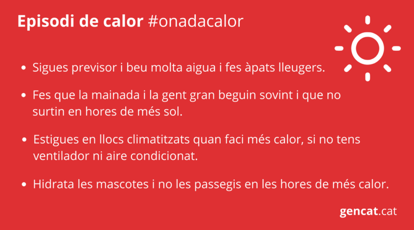 Per a més consells per evitar un cop de calor, podeu consultar el web de la Generalitat de Catalunya.